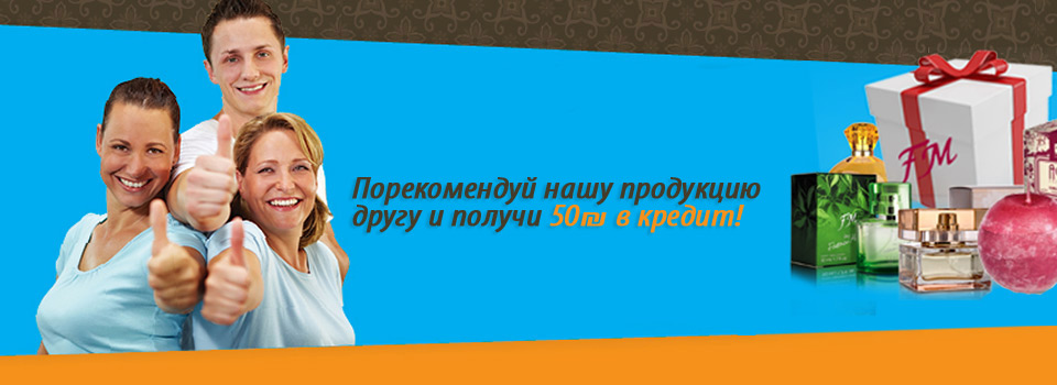 Ваш друг заинтересовался нашей продукцией. Для того, чтобы вы получили 50₪ кредит на вашу следующую покупку, все, что ему необходимо сделать, это заказать товар (парфюмерию или продукцию For Home) в общей сложности не менее, чем на 500₪ (не обязательно за один раз), и при этом сослаться на Вас. После этого Вы получаете на е-маил сообщение от нас с кредитным ваучером. Количество ваучеров (рекомендаций) - не ограниченно!